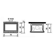 Призматическая топка. Закрытая топка со стальным корпусом и широким обзором огня. Эркерное составное огнеупорное стекло. Очаг с чугунной футеровкой. Плавный подъем дверцы-гильотины. Топка может устанавливаться как с пристенной облицовкой, так и в угловой версии камина.
