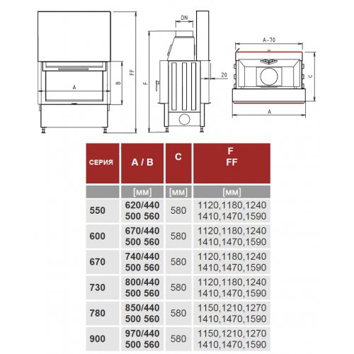 - Диаметр дымохода 180 мм