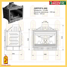 Центральный металлический камин с 4-я дверцами. Дрова: 40 см.