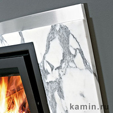 Обрамление из белого узорчатого мрамора Arabescato со вставками из нержавеющей стали.